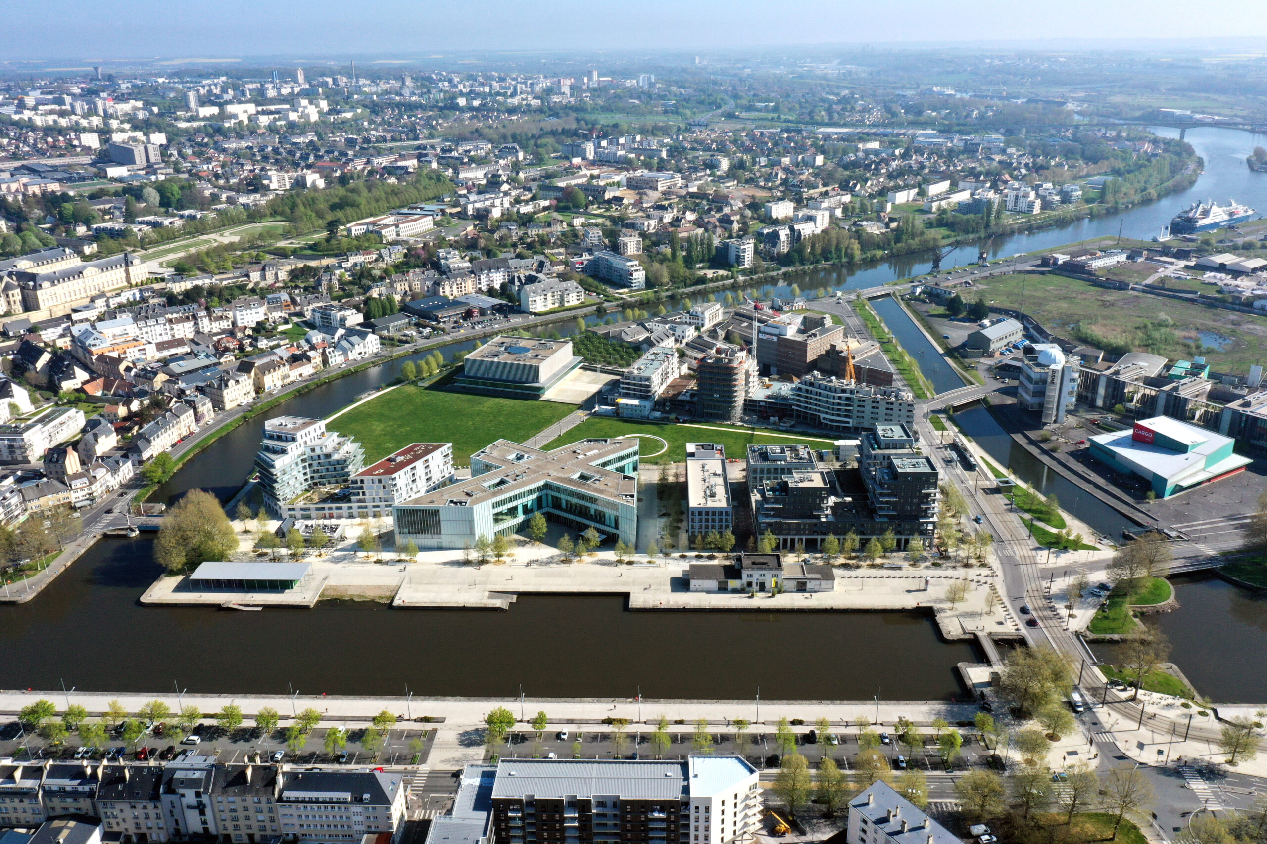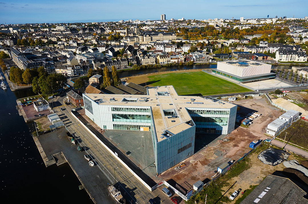 The library, with its cross design, points of reference in the city of Caen to hold onto the territory: in the north-south axis, the Abbey of Saint-Étienne, the founding element of the city, developing southern districts around the station; and in the west-east axis, the districts of post-war reconstruction and the “Presqu’île”.