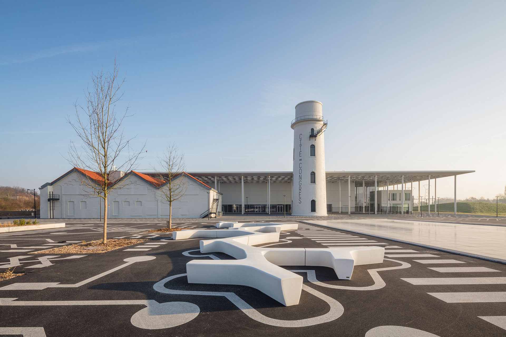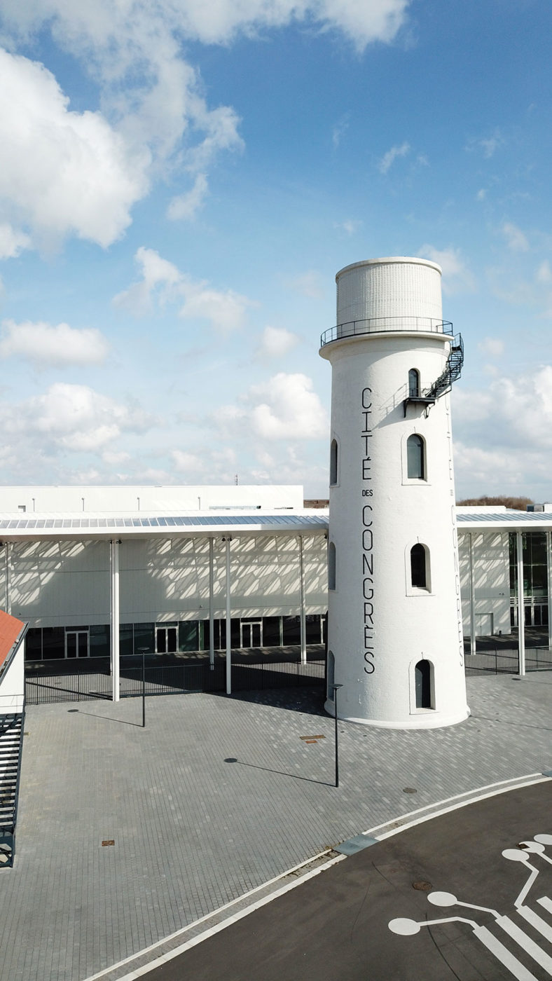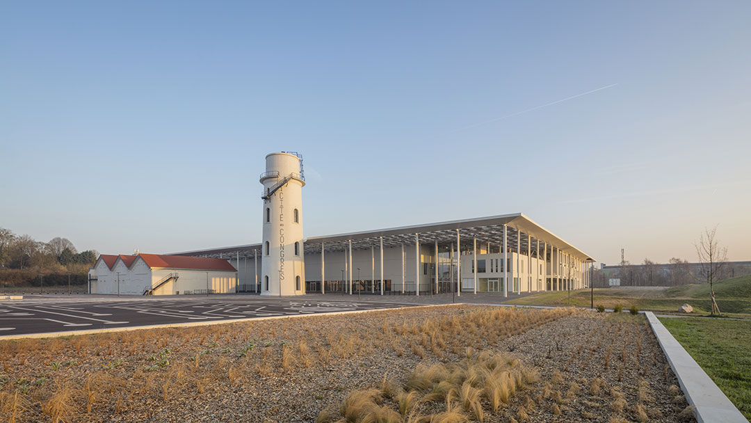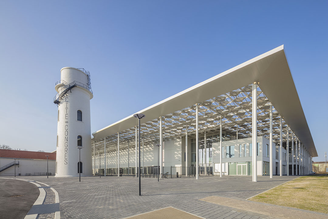 Under a huge canopy of metallic lace, a “nave”, a “hall” and a “village”, operating separately or in a complementary way, will offer, as needed, 4,900 m² of exhibition space, auditoriums of 150, 300 and 800 seats, committee rooms for 600 people, a concert hall with a maximum capacity of 3,000 spectators. To this will be added outdoor exhibition space and restaurant area. An old power station and a water tower will be integrated into the construction.