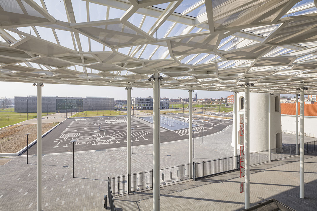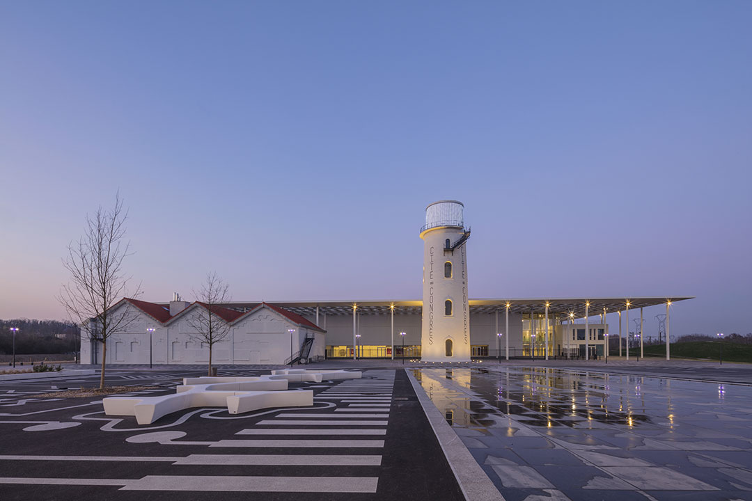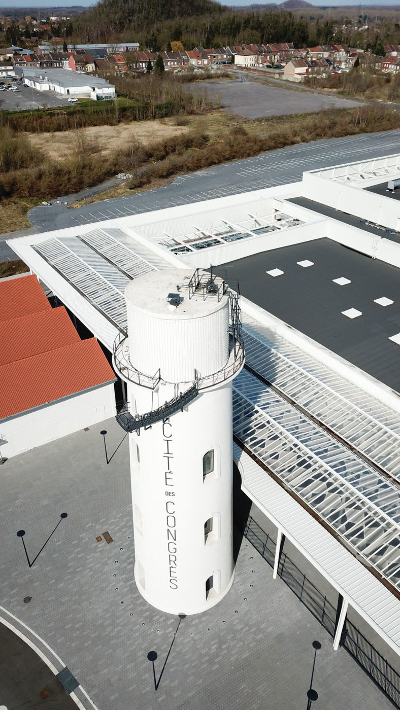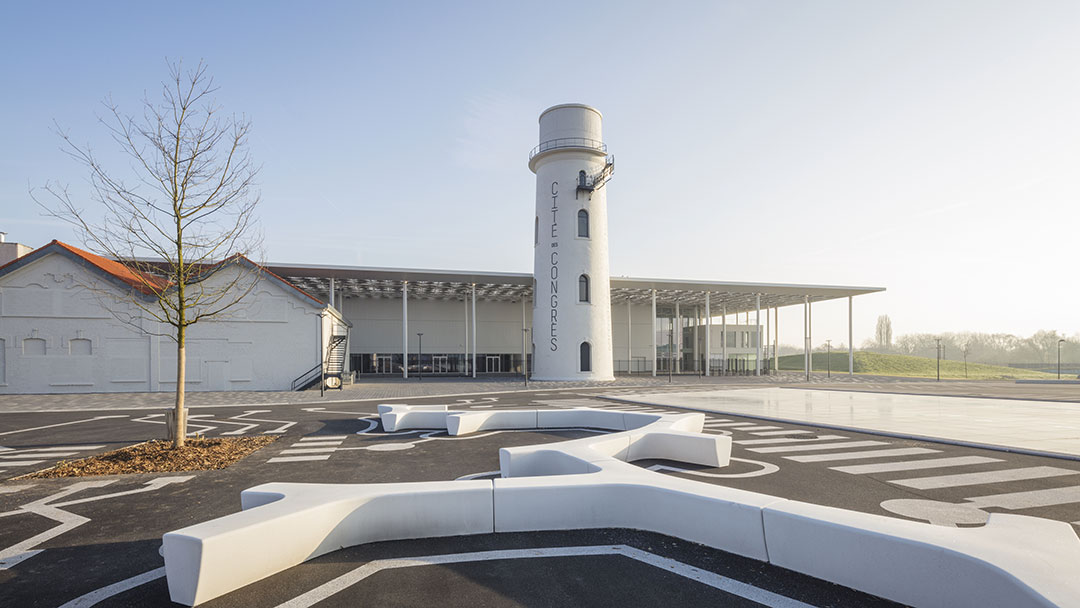 Under a huge canopy of metallic lace, a “nave”, a “hall” and a “village”, operating separately or in a complementary way, will offer, as needed, 4,900 m² of exhibition space, auditoriums of 150, 300 and 800 seats, committee rooms for 600 people, a concert hall with a maximum capacity of 3,000 spectators. To this will be added outdoor exhibition space and restaurant area. An old power station and a water tower will be integrated into the construction.