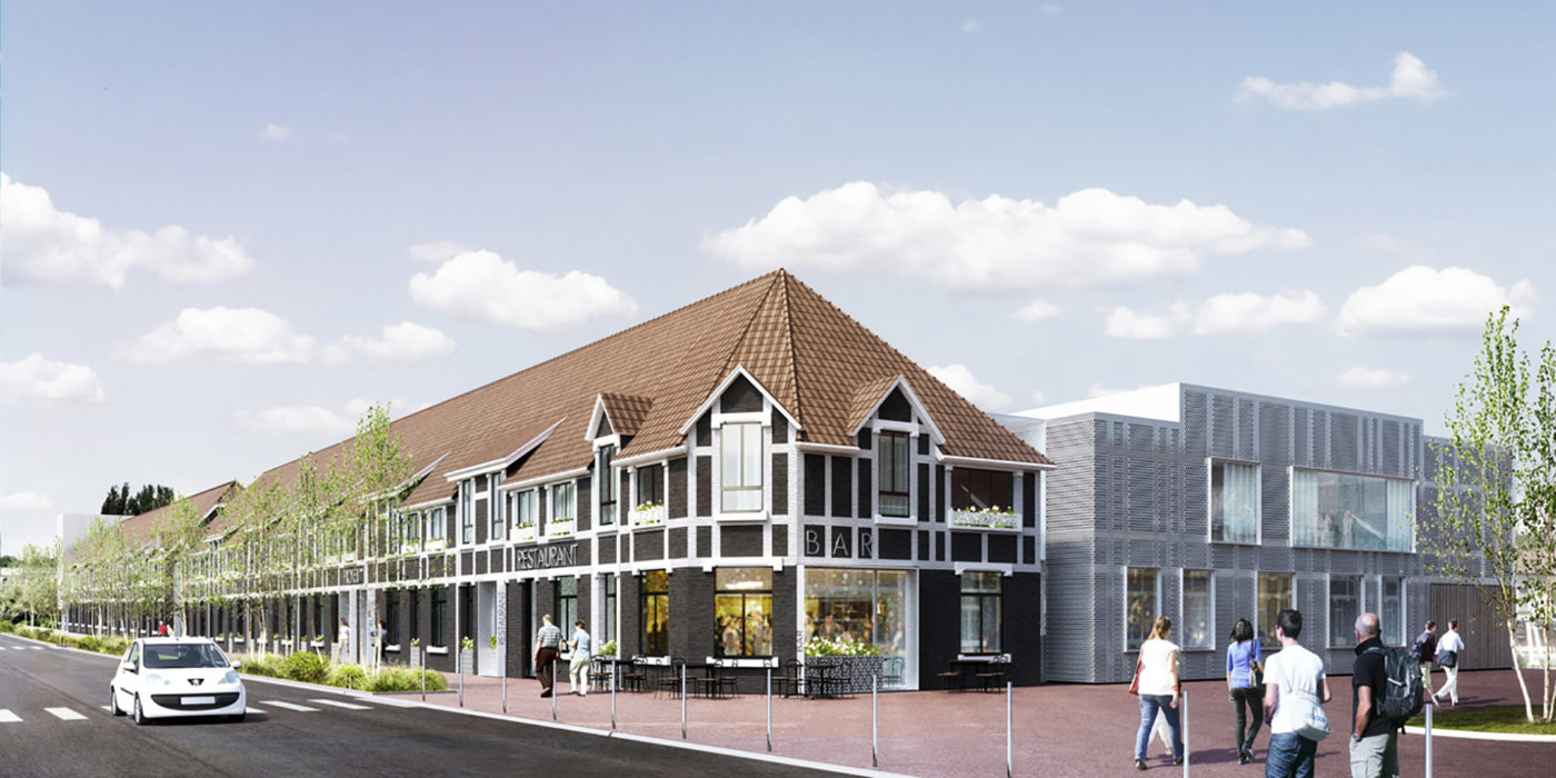 This project brings together a hotel, a restaurant with 80 seats and four seminar rooms. The hotel retains the typical architectural features of Pas-de-Calais such as the brick facades but also the succession of terraced houses and their garden.