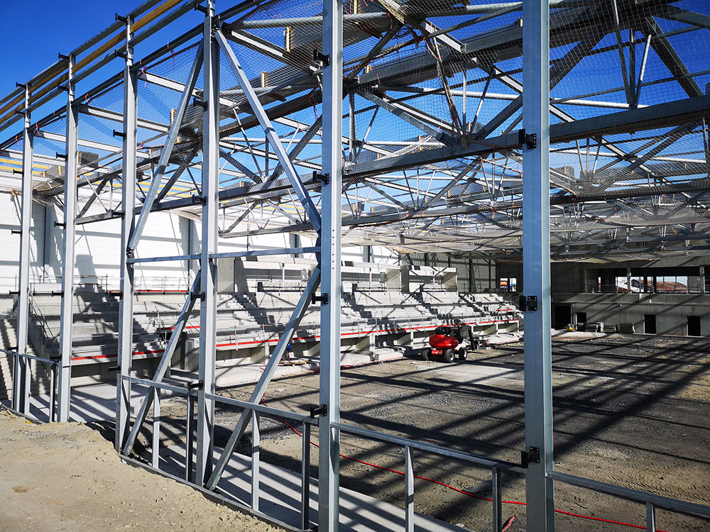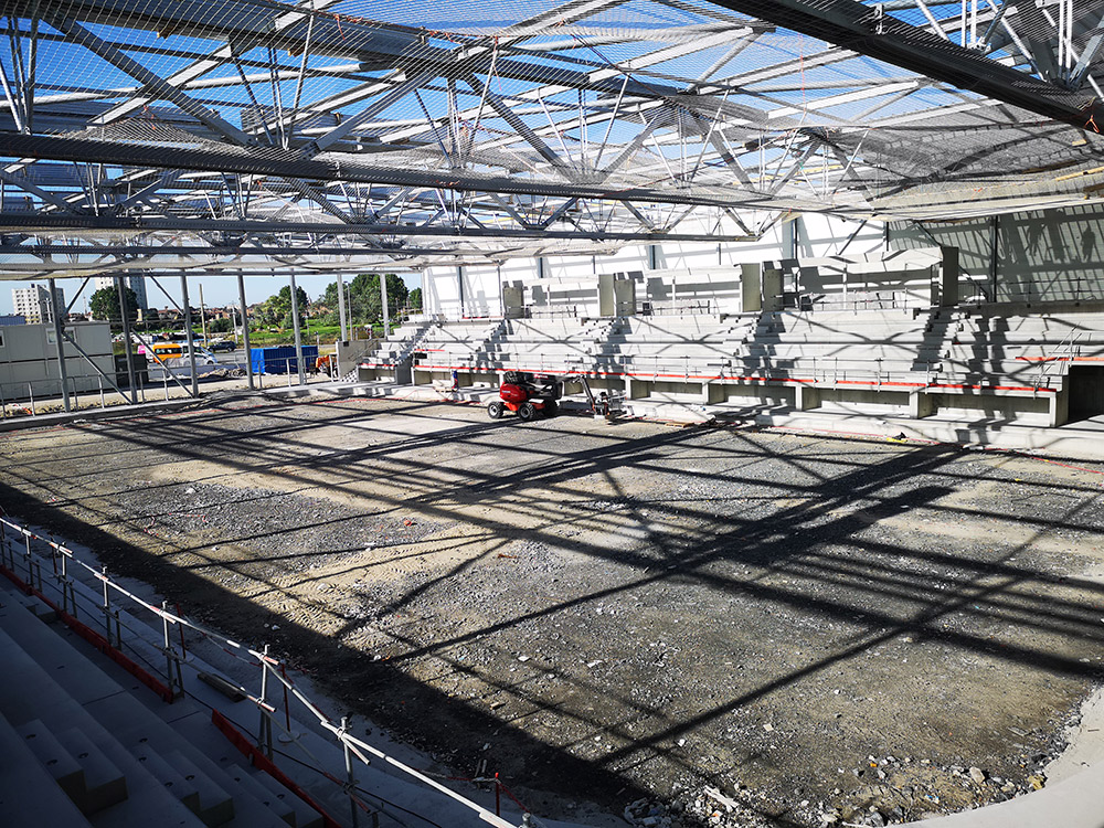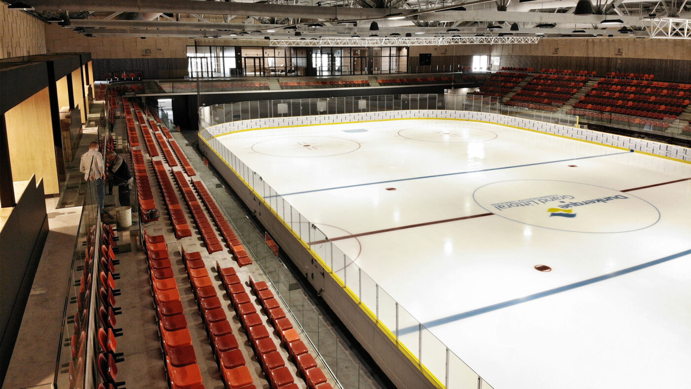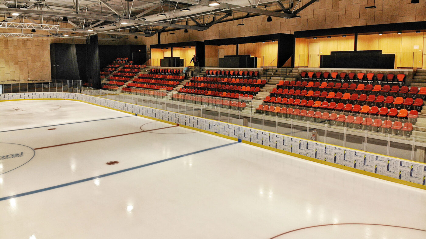 The entire complex covers a total of 7,500 m² on 3 levels. The ice rink is composed of 3 different volumes: a recreational ice-skating area, a central block for meeting spaces and finally an Olympic ice-skating area.