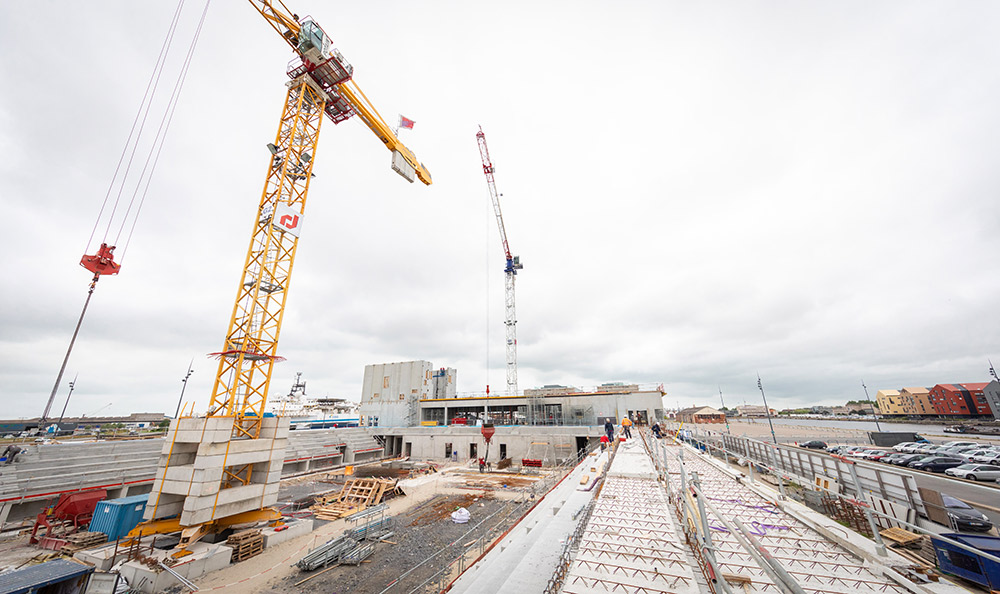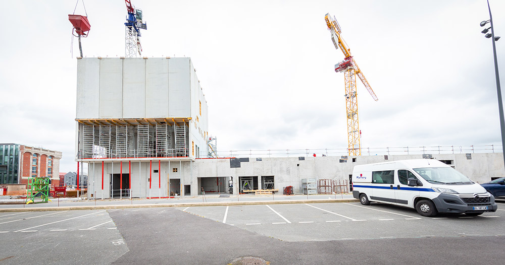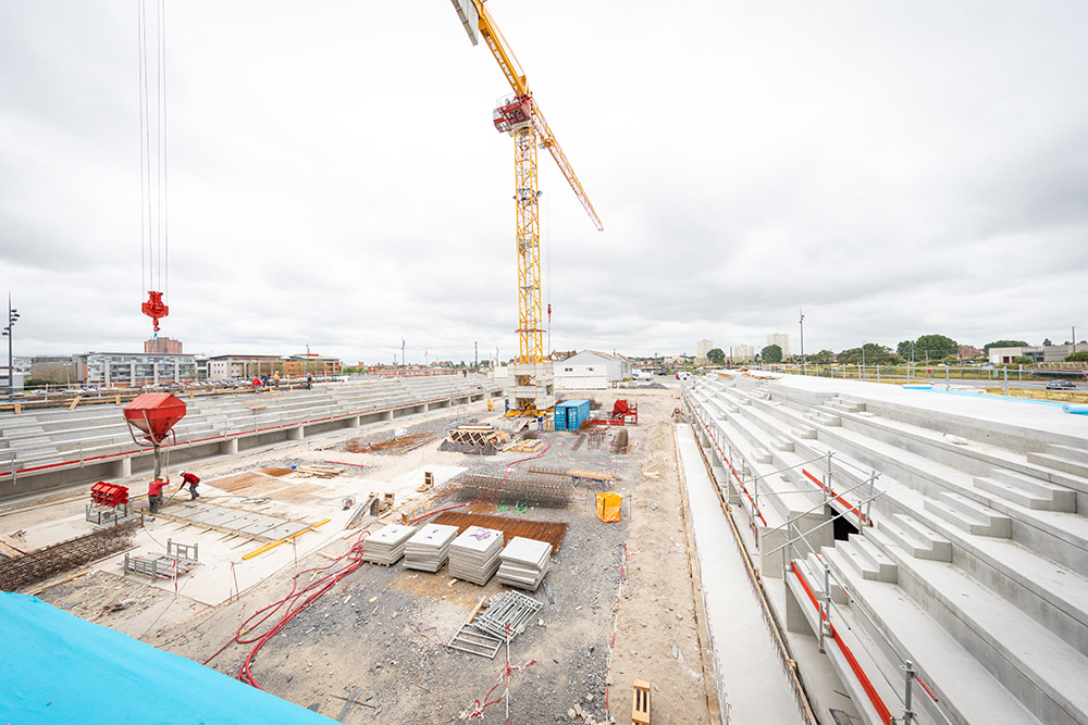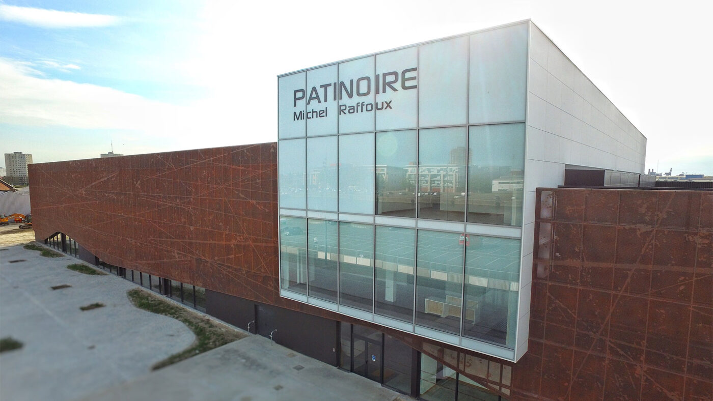 Not far from the Halle aux sucres, on Pier 1, the new skating rink of Dunkirk fits perfectly in its element. The architecture is designed to recall the industrial past of the site with rust-coloured metallic materials that surround the building’s four façades. The more contemporary look is found in white concrete and clear glass.