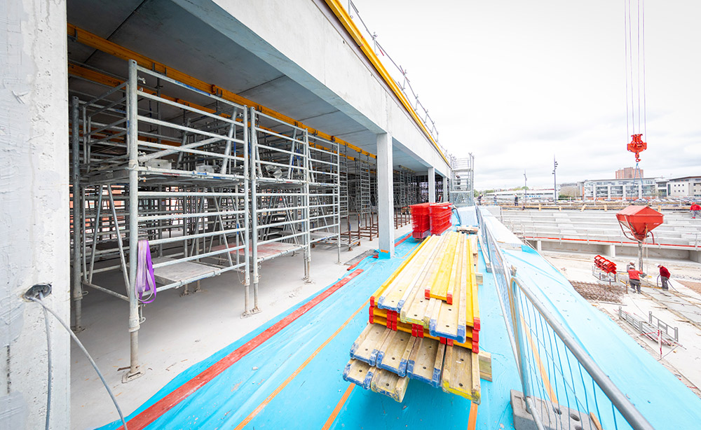 The operation is part of a powerful framework obtained by the execution of an innovative and unprecedented solution in energy production. It relies on our unique experience in producing CO2 refrigeration to optimise the energy consumption. The cold production structure consists of 3 successive layers of 15cm each: first a hot slab, then insulation, and finally the cold slab.