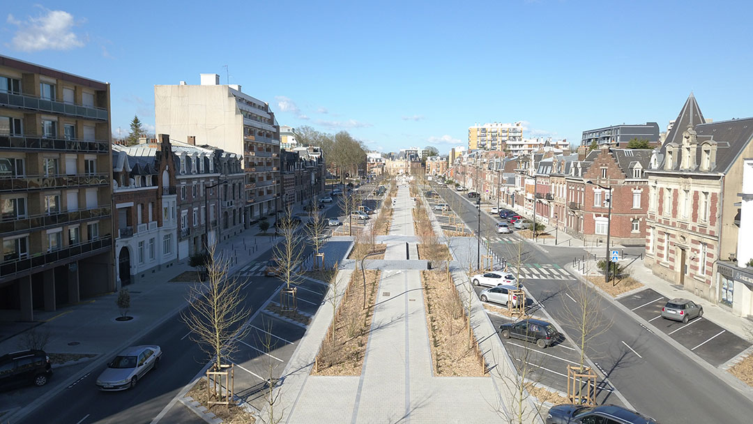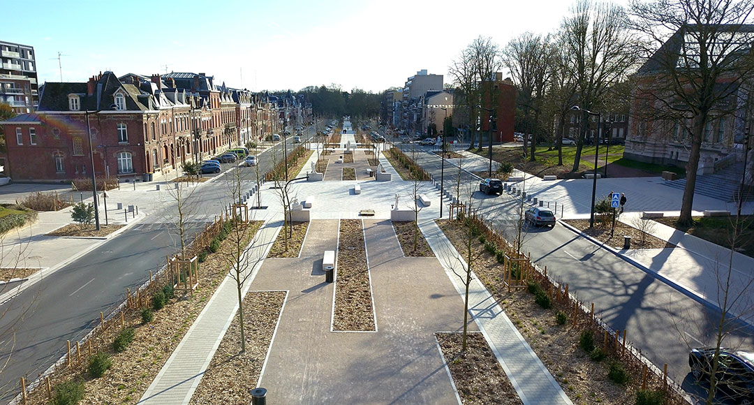 Le Boulevard Watteau est un important axe de circulation dans la ville, l’objectif est de fluidifier tous les modes de circulation. Les parties extérieures sont consacrées aux voitures, les trottoirs sont élargis et des pistes cyclables sont créées. La voie centrale est exclusivement réservée à la promenade. Le boulevard étant connu pour ses nombreux arbres, une attention particulière est portée sur la dimension paysagère où la nature a une place privilégiée.