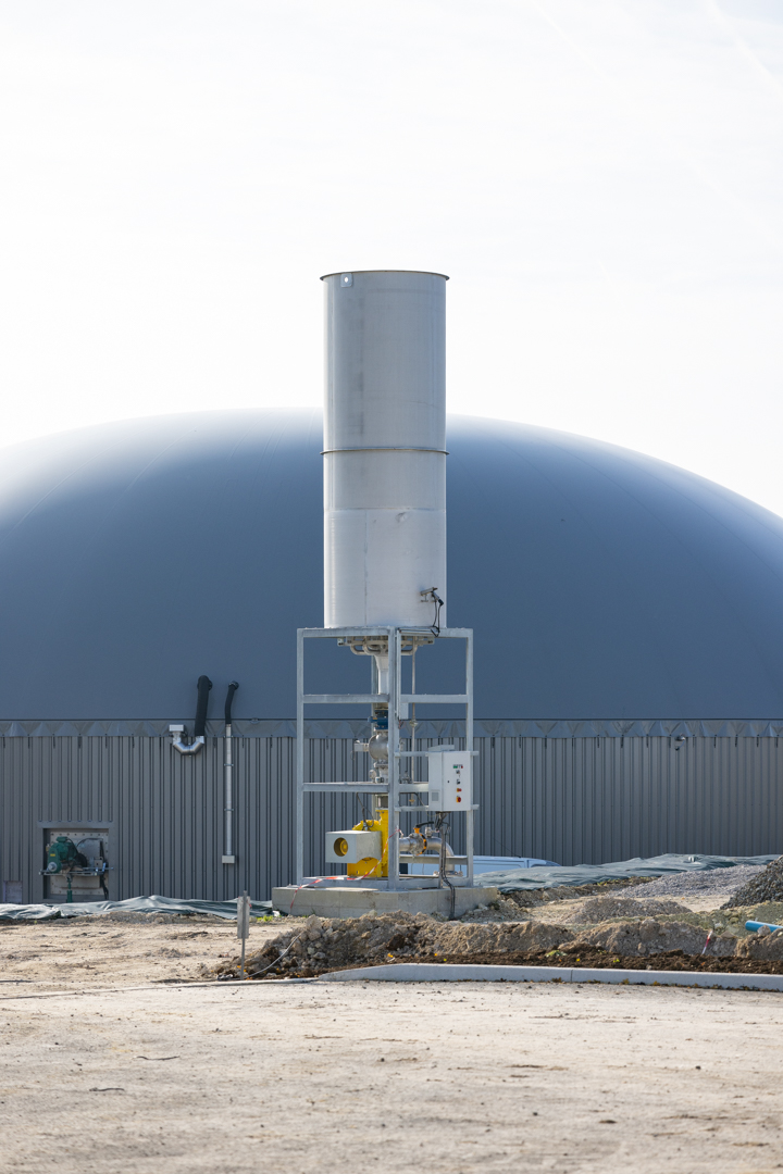 Chaque jour, il digère 150 tonnes de matières végétales pour produire 500 m³/h de biogaz injecté directement dans le réseau GRT, à une pression de 17 bars.
