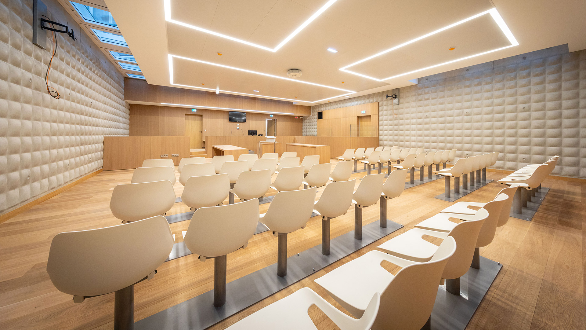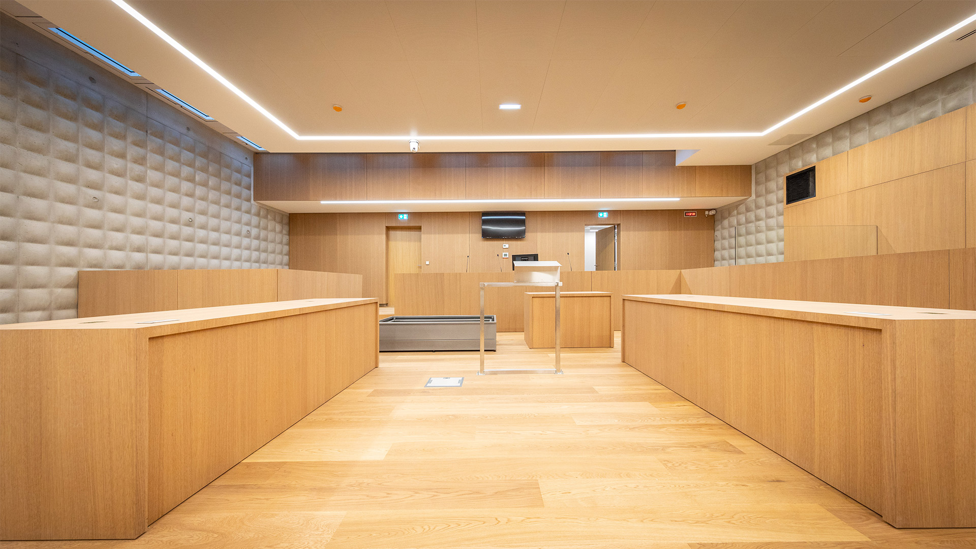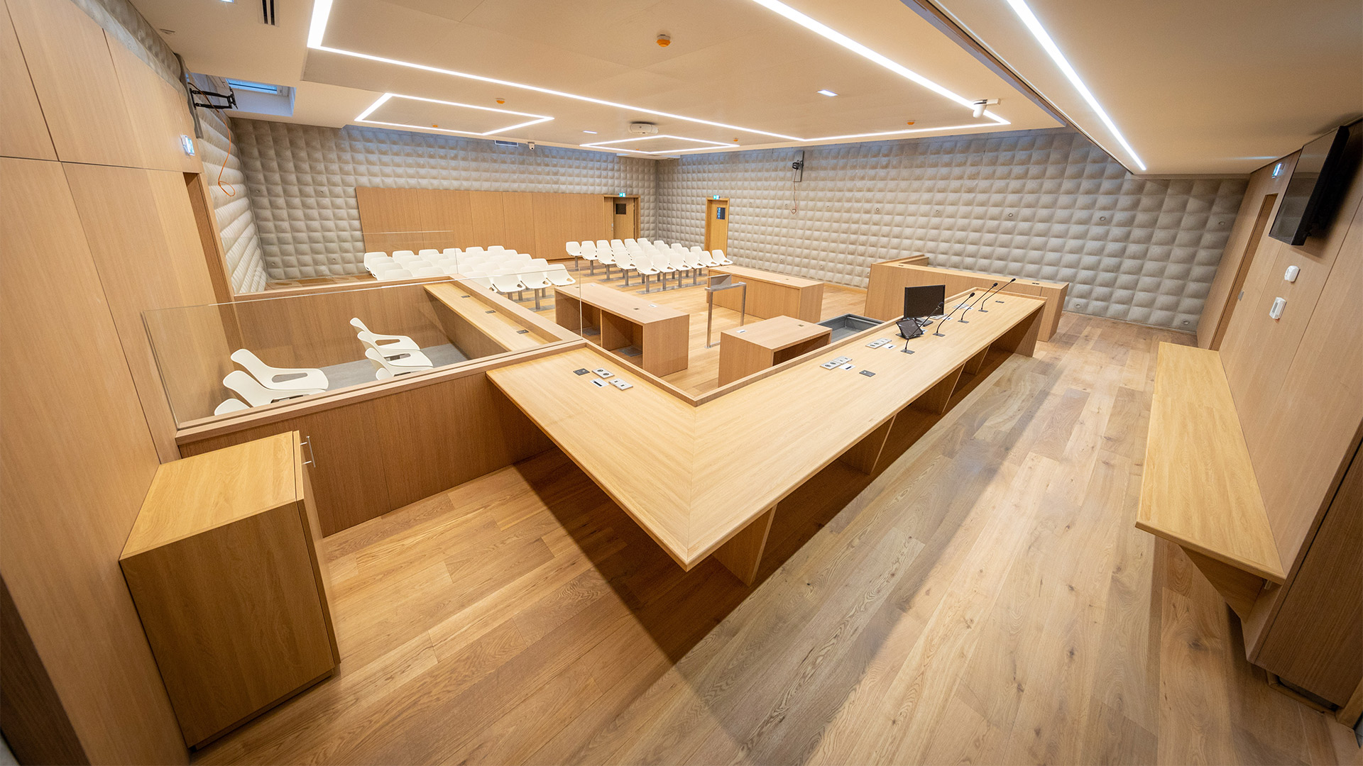 Les équipes de l’agence Aménagement intérieur ont réalisé les menuiseries intérieures dans les nouvelles salles d’audiences mais également dans les bureaux administratifs.