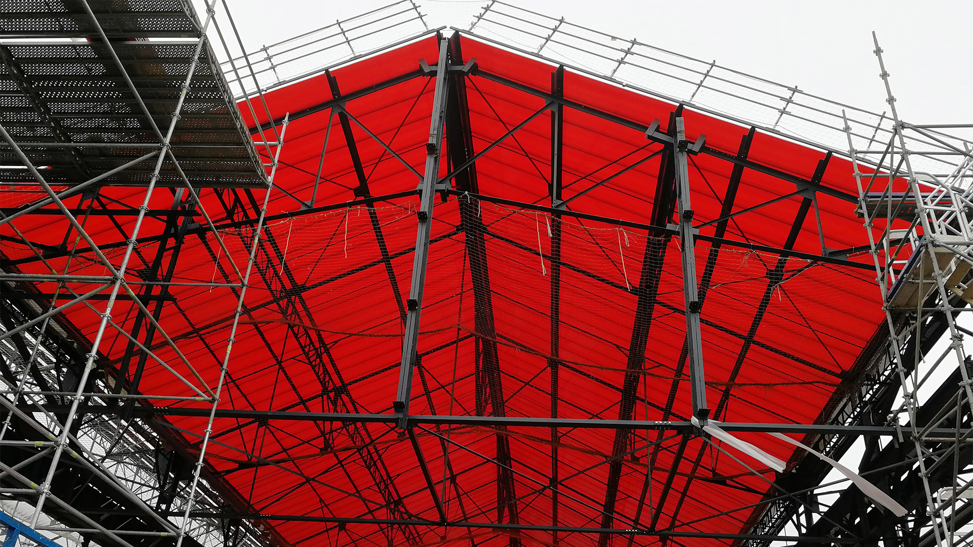Après la réalisation de la nef de 7 000 m² en polycarbonate rouge imaginée par l’architecte Rudy Ricciotti, lors de la 1ère phase en 2018, nos équipes de l’agence Couverture bardage et étanchéité étaient de retour pour une seconde phase d’aménagement. Elles y ont réalisé, pour l’occasion, les travaux de couverture et d’étanchéité de la grande scène ainsi que des deux bâtiments annexes, aux murs sombres et satinés, pour une surface totale de 2 250 m².