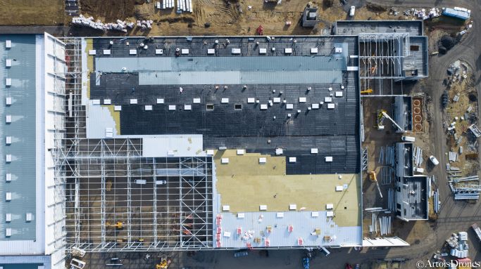 Pendant un an, l’agence Couverture, bardage, étanchéité – Grands projets a réalisé les travaux de couverture étanchéité et bardage de cet impressionnant projet.